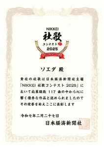 『第299回社歌コンテスト「チームワーク賞」受賞』では、