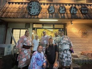 食後はオヤジさん、オカミさん、お相撲さん、小生といっしょに記念撮影です。