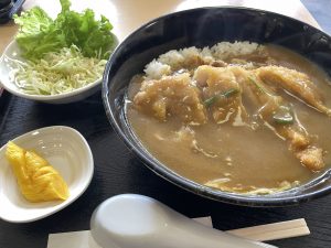 こちらが新しいカレー粉で作ったカツカレーうどんです。