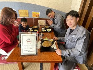 名古屋場所でいらっしゃった、佐渡ヶ嶽部屋のお相撲さんと一緒に、カツカレー丼を頂きました。