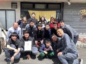 弊社社歌『オヤクに立てます!ソエダなら!!』が日本経済新聞社の社歌コンテストのチームワーク賞を受賞した際、恵比寿さんで祝勝会を開催しました。