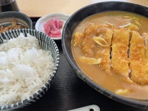 恵比寿さんの代表メニューであるカツカレーうどん。